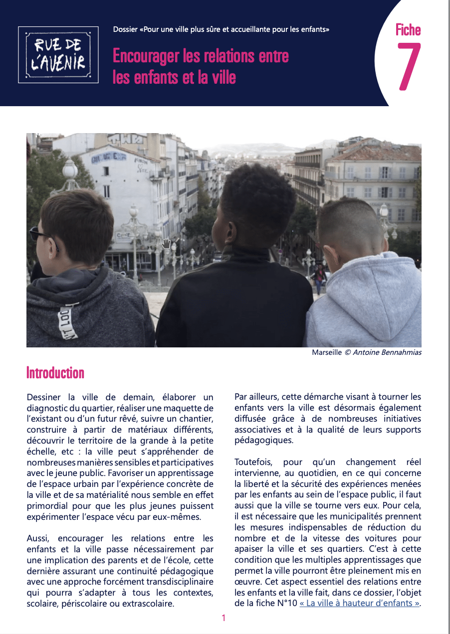 Sécuriser le trajet domicile-école, Denis Moreau, Rue de l’avenir, Fiche 4 du dossier « Pour une ville sûre et accueillante pour les enfants », 2020, PDF, 4p